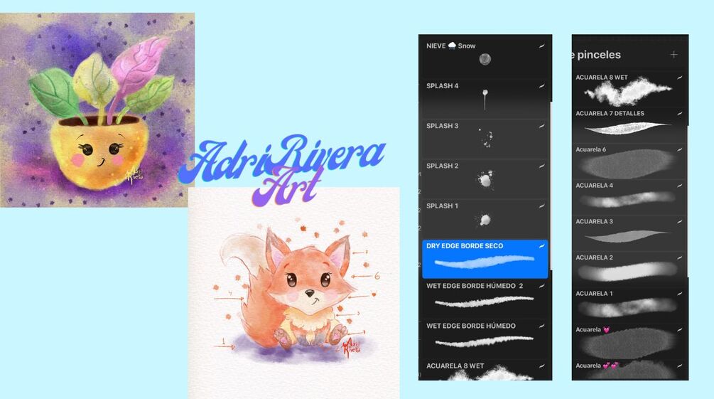 🖌 Pinceles de acuarelas para Procreate, los he diseñado para que consigas ese efecto acuarela tan bonito